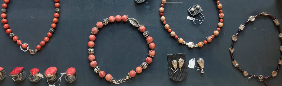 Unser reichhaltiges Schmucksortiment besteht aus handgefertigte Edelsteinketten, Ensembles, Silberschmuck, Ringe, Armbänder, Ohrringe und Anhänger. Alle unsere Ketten sind handgearbeitete Einzestücke, die wir nach eigenen Entwürfen in unserer Werkstatt für Sie fertigen.